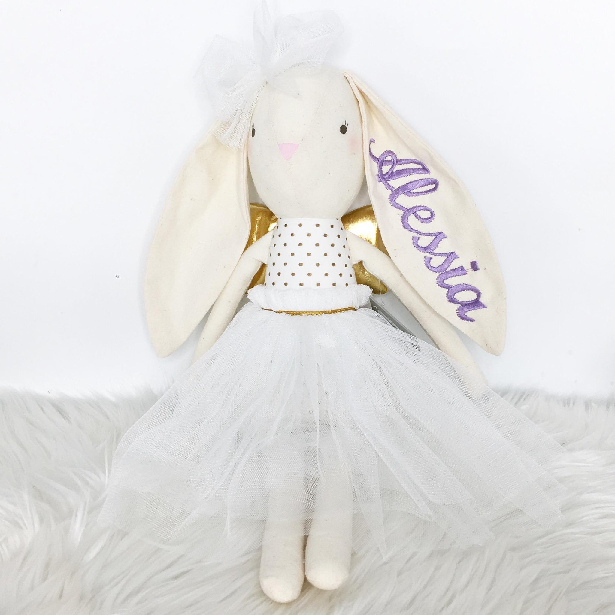 A beautiful, carefully crafted, angelic bunny. Crafted from unprocessed pure cotton, this gorgeous Angel Bunny is sure to delight. Suitable from 3 yrs and makes a pretty nursery decor piece until then!