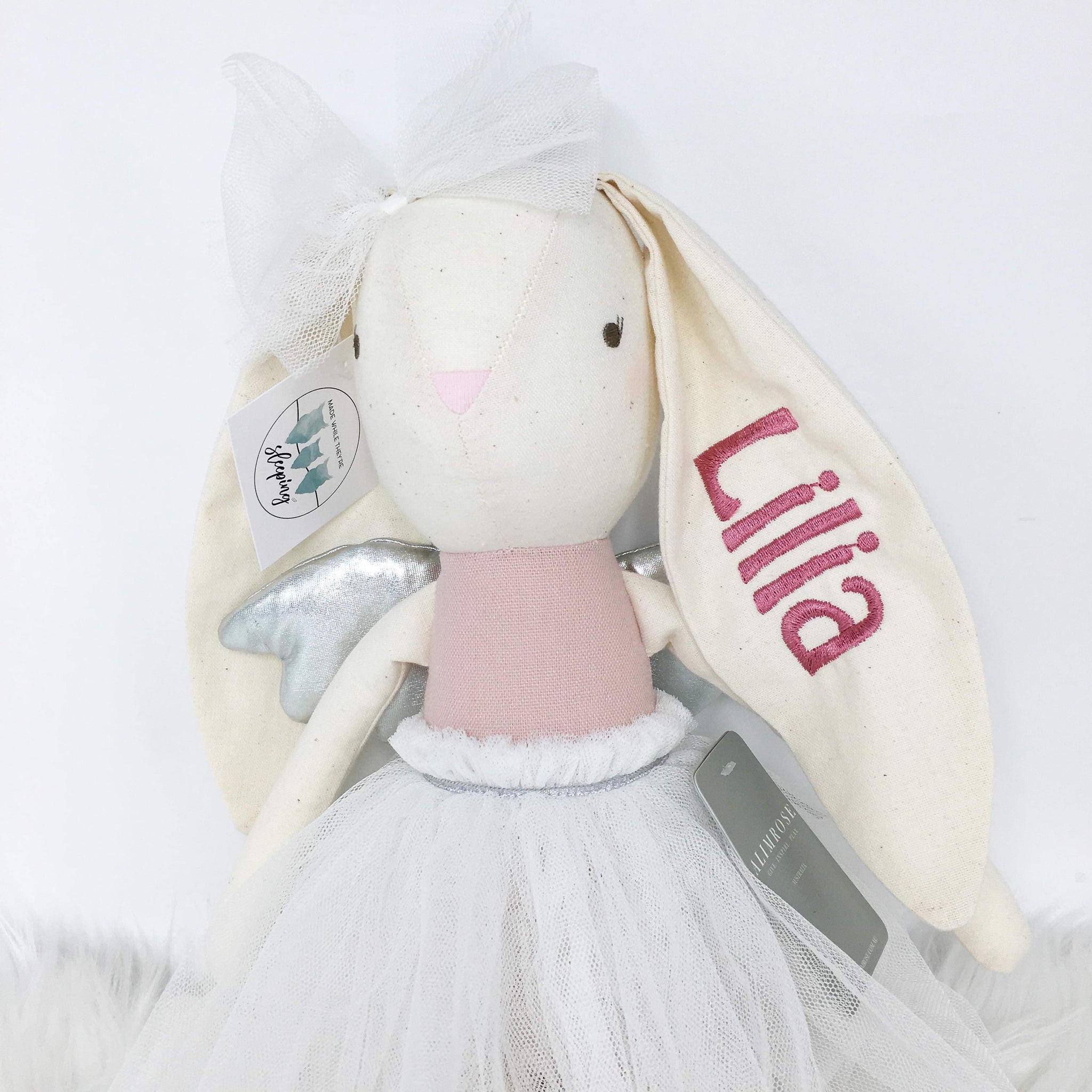 A beautiful, carefully crafted, angelic bunny. Crafted from unprocessed pure cotton, this gorgeous Angel Bunny is sure to delight. Suitable from 3 yrs and makes a pretty nursery decor piece until then!