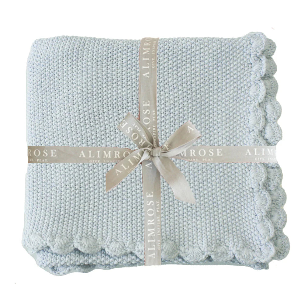 Beautiful soft knit baby blanket measuring 100cm x 80cm.