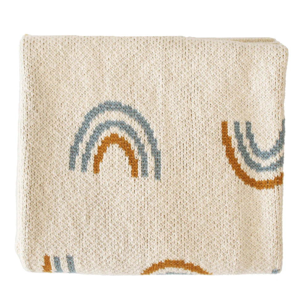 A unique and gorgeous thick 100% cotton knit natural rainbow baby blanket blue. Adorable!